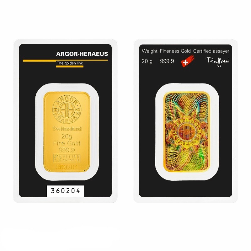 The Argor Heraeuse gold kinebar series is available in 1 gram, 2 gram, 5 gram, 10 gram, 20 gram and 1 ounce sizes.